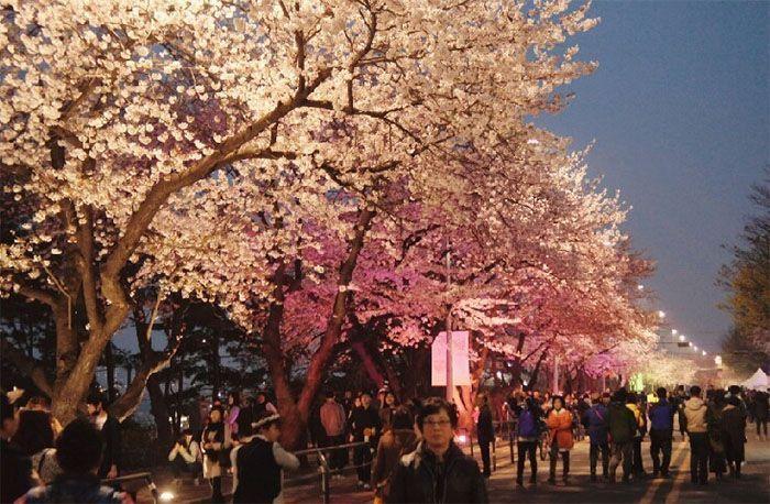 通常汝夷岛的韩国樱花庆典在4月中上旬举办,