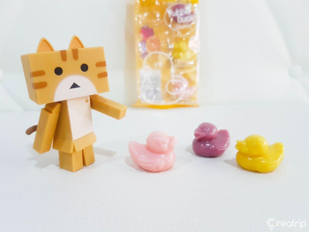 《不负责任试吃心得》☑ 香味与口感:真的不夸张,小编跟朋友们一吃鸭子,就立马吐掉!真的吐掉!味道真很神奇,像塑胶又像橡皮擦,非常不科学的味道!☑ 造型:造型很像洗澡盆的黄色小鸭,但是更像肥皂☑ 价格:1,200韩元☑ 分数:☆☆☆☆☆☑ 小编有话要说:因为一入口立马吐掉,完全不想要吞下它,所以超级不推,0分!