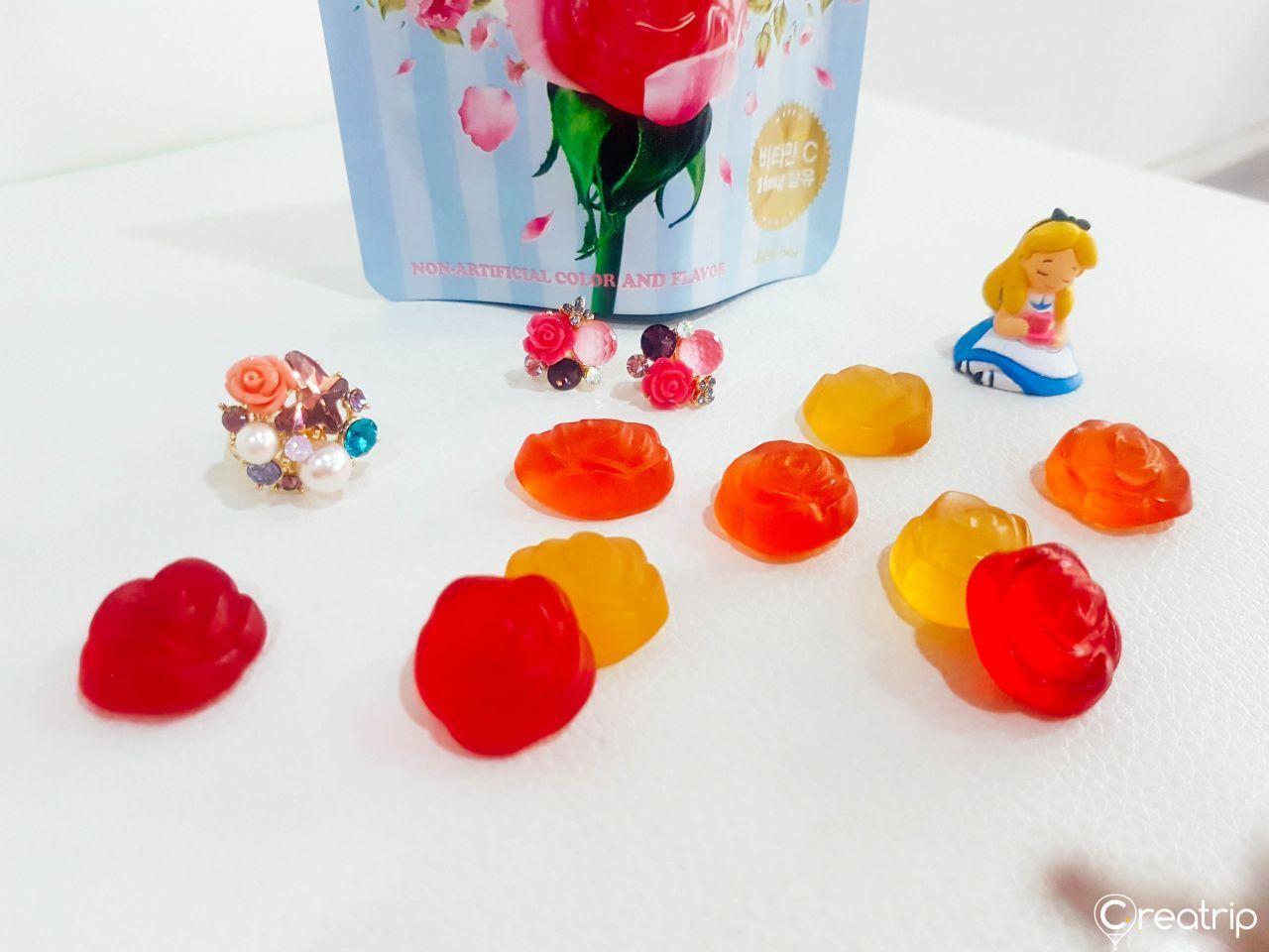 《不负责任试吃心得》☑ 香味与口感:打开包装的一刹那就是玫瑰香水味扑鼻,吃进嘴里也有点像是在吃玫瑰花香水一样☑ 造型:少女心喷发的玫瑰花造型,小编超爱♡☑ 价格:1,500韩元 (7-11独卖)☑ 分数:★★☆☆☆☑ 小编有话要说:因为小编个人很不喜欢玫瑰香水味,所以当整个玫瑰香水味充满口中的时候,小边就把玫瑰软糖吐出来了。但是小编的朋友很喜欢玫瑰香水,她就觉得很满意喔!所以其实意见还满两极的