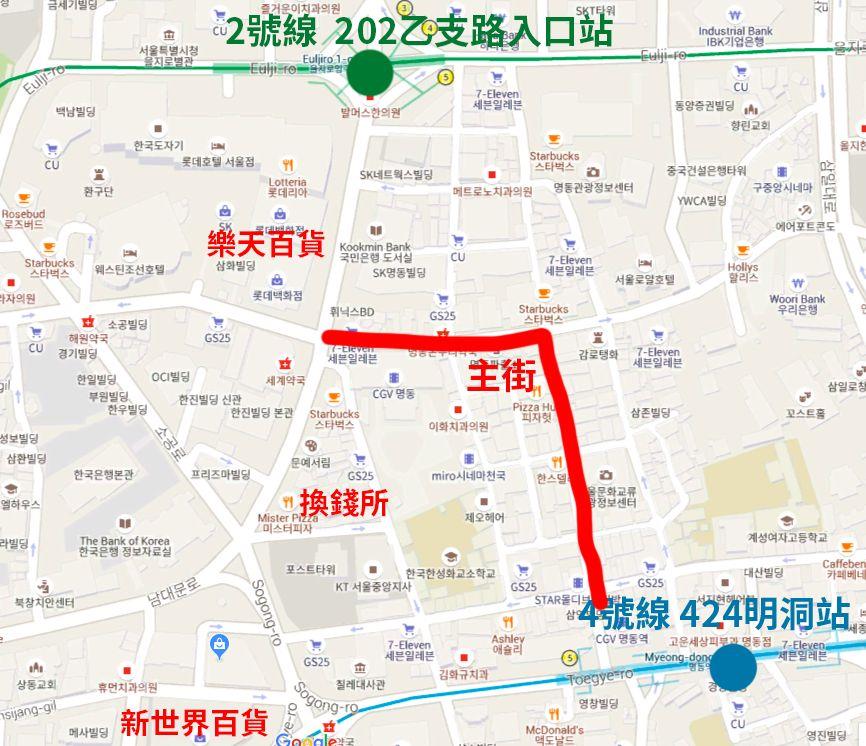 则建议直接搭2号线到乙支路入口,出来步行后一样可至明洞商圈哦!