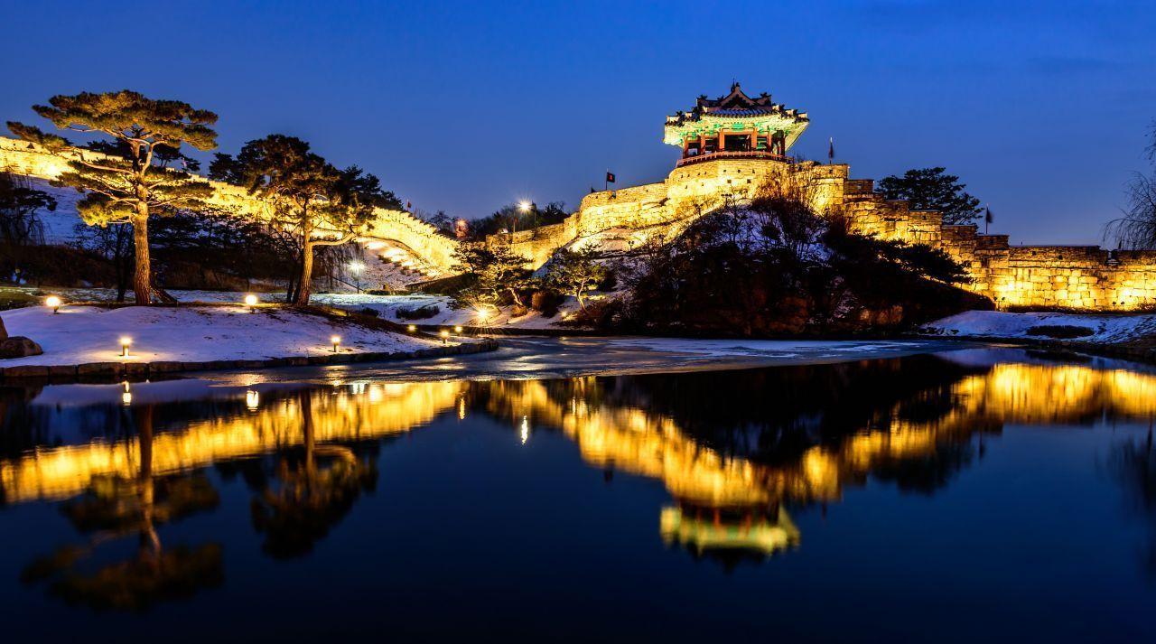 如同前面说过的,韩国传统的建筑物在经过日治时期及急遽的经济成长后,几乎都不见了。不过幸好还有几个地方保存的跟以前几乎一模一样,其中一个就是水原华城。比起说是军事用地,倒不如说这里是饱含皇帝孝心的地方,保存了韩国固有的美丽。水原华城里面有著小溪、其他建筑物跟造景,这几个东西相互呼应后就形成了最有名的美丽夜景。