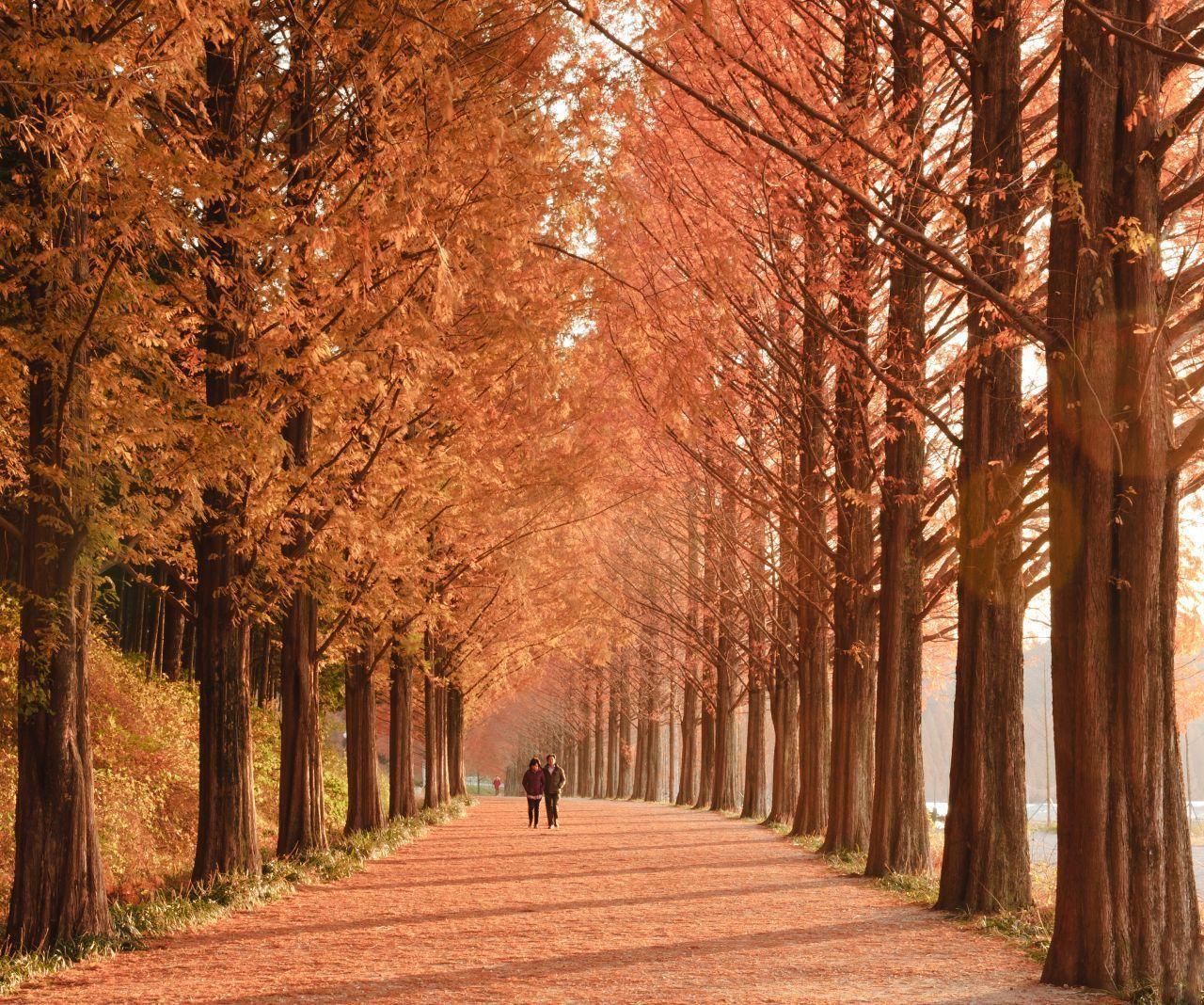 有名的拍照景点 潭阳水杉林荫道。在没有人的平日来这边走的话,完全可以感到疗愈的感觉