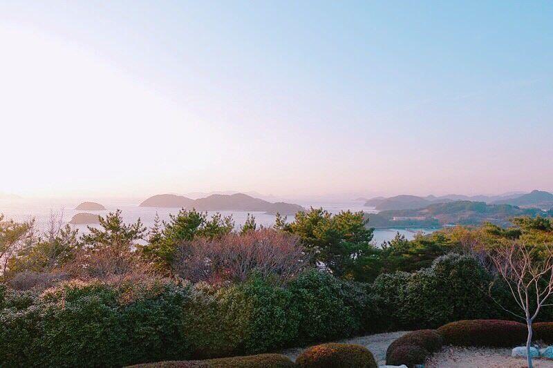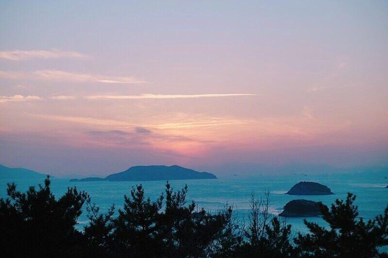 觉得看到粉红色的天空,搭配满满的闲丽海上国立公园,非常舒压