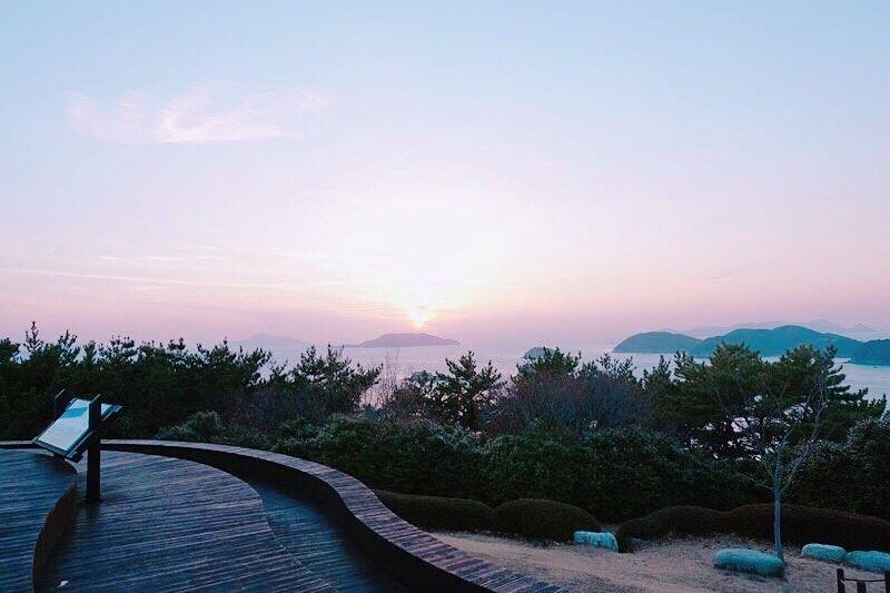 就在我们逛完美术馆,要去公园看夕阳的路上,突然觉得夕阳好像赶进度一样,突然用飙速在下山的哈哈。位在庆尚南道统营市最南端的达牙公园,因为地形就像是象牙一样,所以才被取名为「达牙」的。