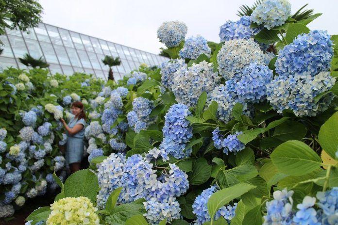 济州岛 搭配夏天蓝天白云的绣球花 图片提供:济州观光公社