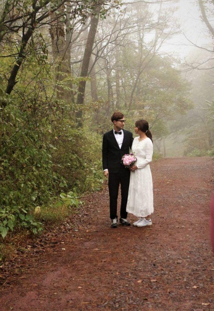 济州岛 雨中朦胧的四连伊林荫道,也是拍摄婚纱的圣地