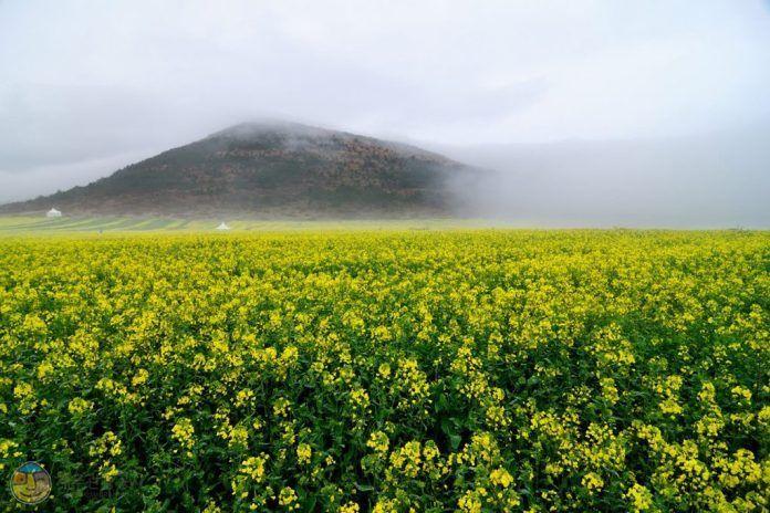 -济州加时里村:每年三月,一整片黄色的油菜花海,与青翠的山峰,交织成迷人风景。