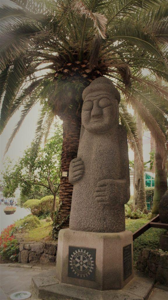 由于济州岛为火山喷发后形成的火山地形,全岛有95%皆为玄武岩,随处可见由玄武石砌成的矮墙。为了推广济州岛特殊的火山石头地形及石头文化,更创造出石头爷爷(돌하르방)作为当地吉祥物。说道济州岛最有名的人,大概就是石头爷爷了。头戴帽子,有著圆圆的眼睛和大大的鼻子。据说摸石头爷爷的鼻子会生男生,摸耳朵会生女生,到了济州见到石头爷爷,别忘了看看鼻子跟耳朵是否特别光亮唷。