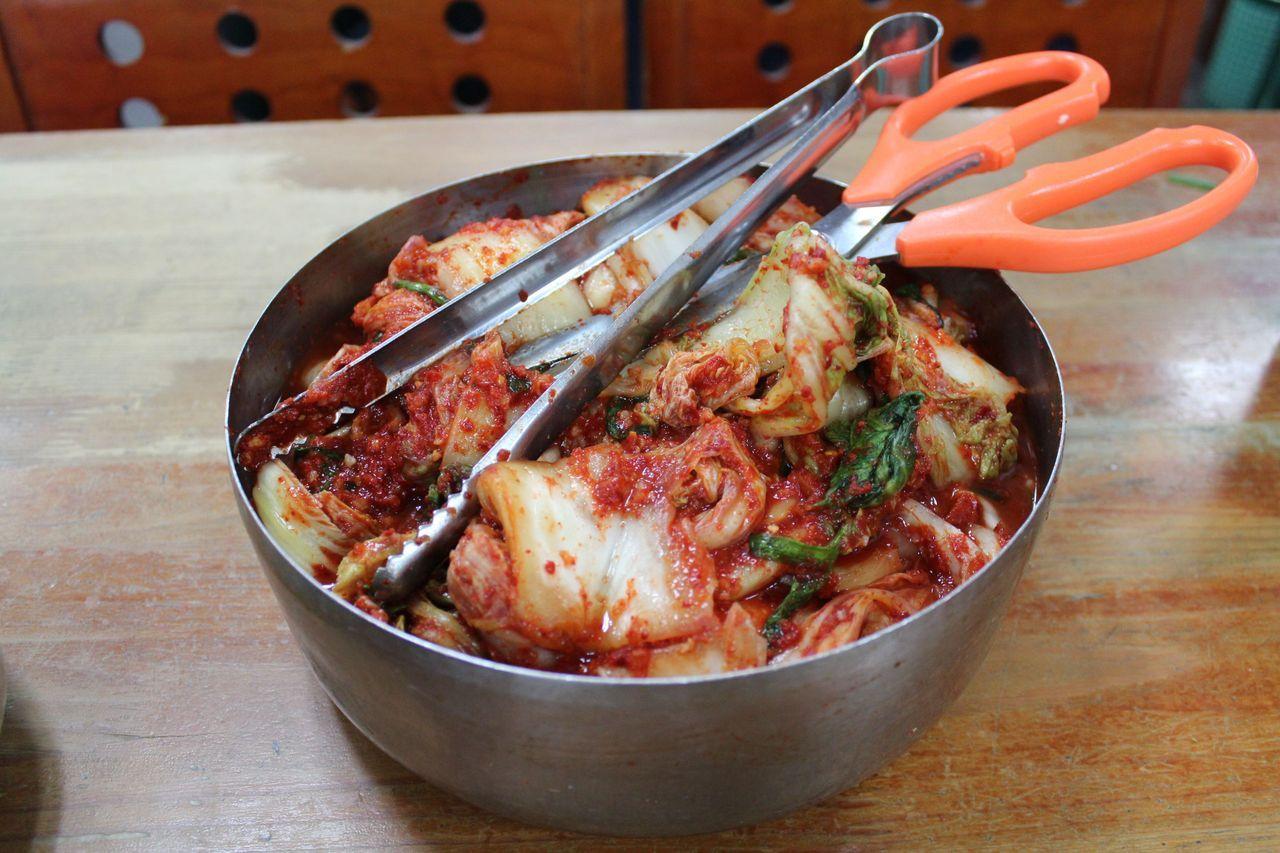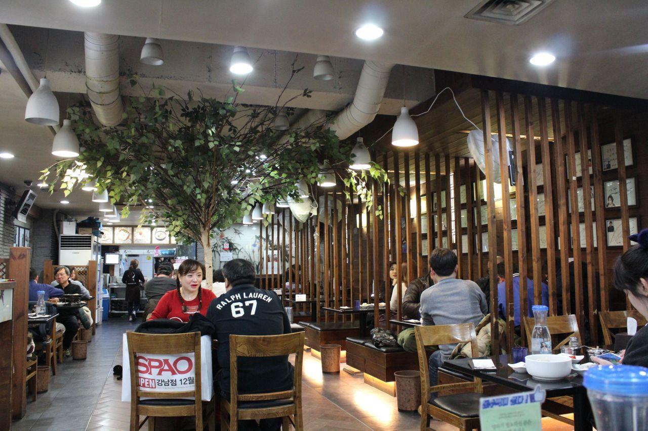 上桌时清汤中会加入牛肉片、面条和饭,若是不喜欢这样的味道,想再吃咸一点,可以加入辣酱、葱、盐,自行调配。而且桌上的泡菜也可以自己动手剪,加入雪浓汤中,味道也令人十分满意。这间首尔美食店在秋冬很受欢迎,吃完全身都暖烘烘。