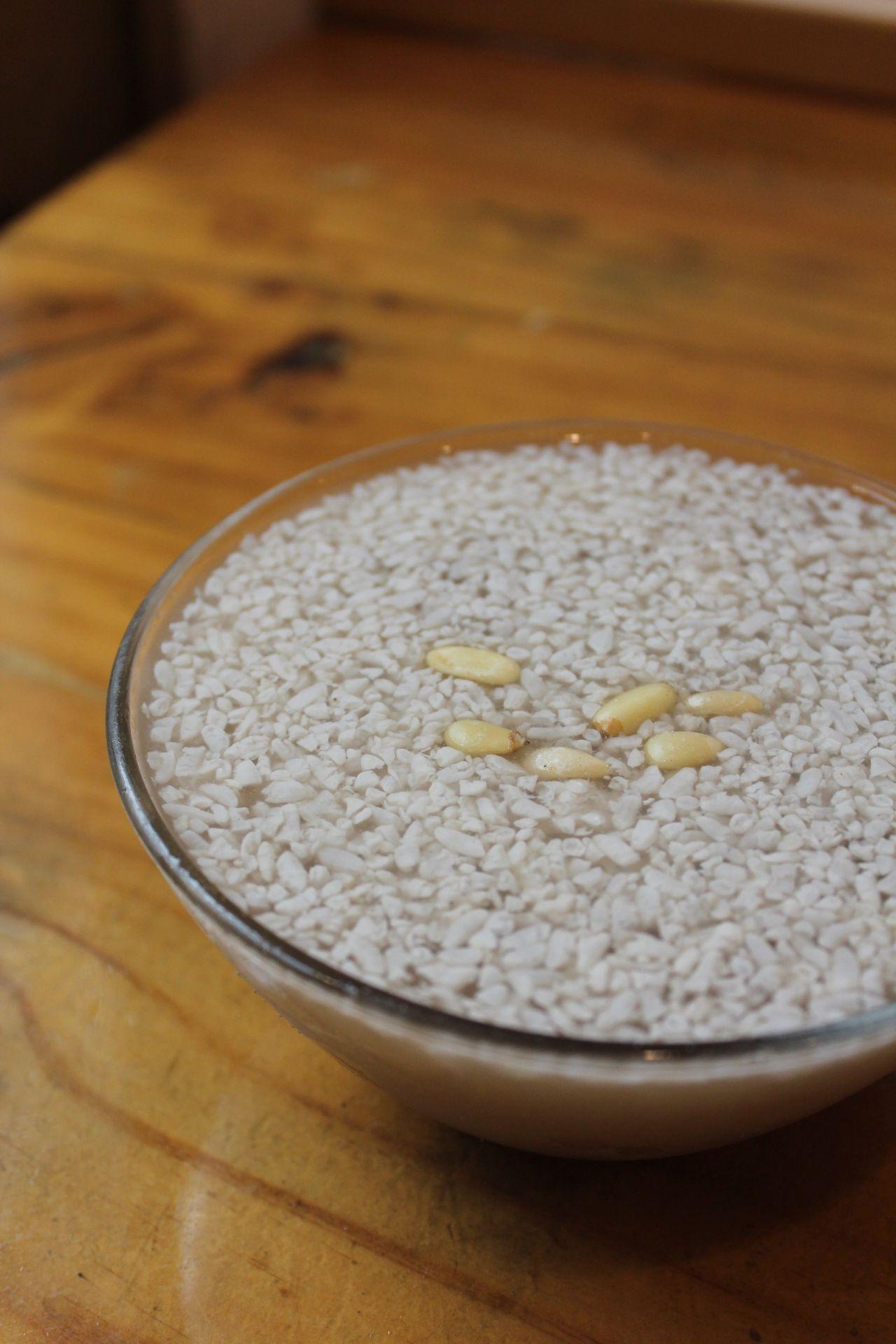 米露是用上米制成,微甜,十分清爽这间首尔美食店家每天自家炒制红豆茸,质感浓稠,甜度也十分刚好,加上栗子、肉桂粉等等,一上桌,便能感受到热热的香气直扑而来,拿汤匙一捞,底部还有一块手打年糕,层次十分丰富。店家也提供自家制甜米浆,不只是老一辈喜欢,韩国年轻人也十分喜爱。