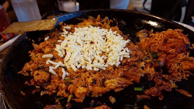 除此之外也可以根据个人喜好加点拉面、乌冬面或年糕等主食,又或是加点起司锅将辣炒鸡排沾着起司吃等都是非常有人气的吃法