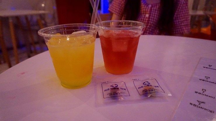 在这里只要15,000韩币就可以无限畅饮鸡尾酒,而且到柜台点完餐后,柜台就会现做鸡尾酒