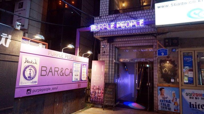 'Purple People'位于弘大夜店街上,是一间外观非常漂亮的酒吧