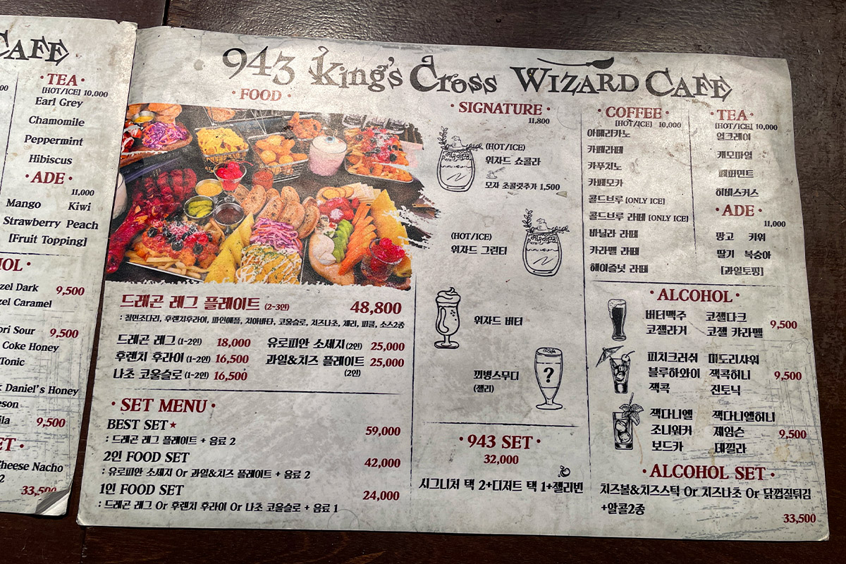 弘大有许多咖啡厅,而这间哈利波特咖啡厅「943 King's Cross」,虽然不是韩国唯一一间主打奇幻风格的咖啡厅,但因为开在弘大闹区,吸引了许多人朝圣。