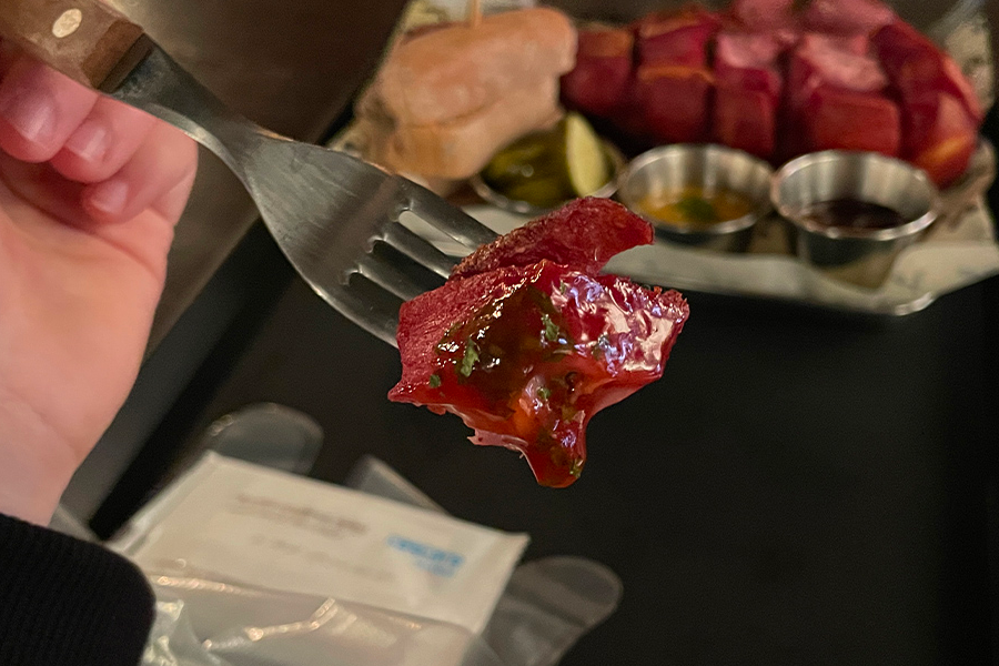 各位也可以把肉搭配面包一起吃,也十分满足。