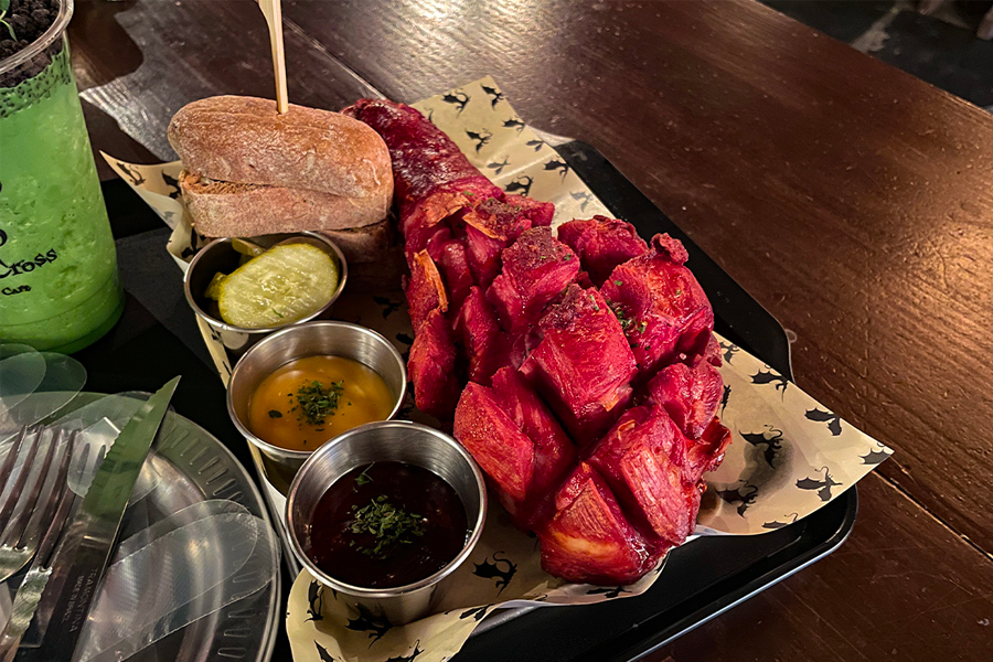 Dragon Leg Plate是一整条炸火鸡腿,和啤酒搭配非常适合,酱汁则附上了芥末和牛排酱,酸甜的芥末和甜甜的牛排酱,与火鸡腿搭配非常合适,让肉吃起来不会太柴。