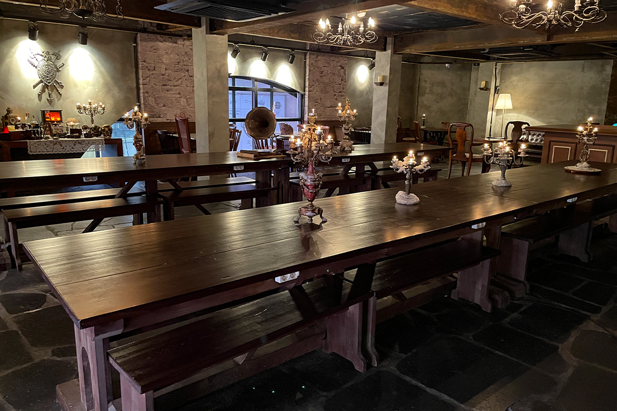 这里就像一个鸡尾酒吧,墙上到布帘上到处都是幽灵的装饰,让人误以为自己真的像是在Harry Potter的电影场景中。