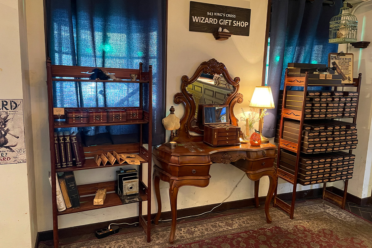 2楼的魔法师咖啡厅也有许多超好拍的摄影区,每个角落都有适合拍照的地方,细节都栩栩如生重现,就算不拍照,在这里坐坐,也有种非常神秘而华丽的感觉。