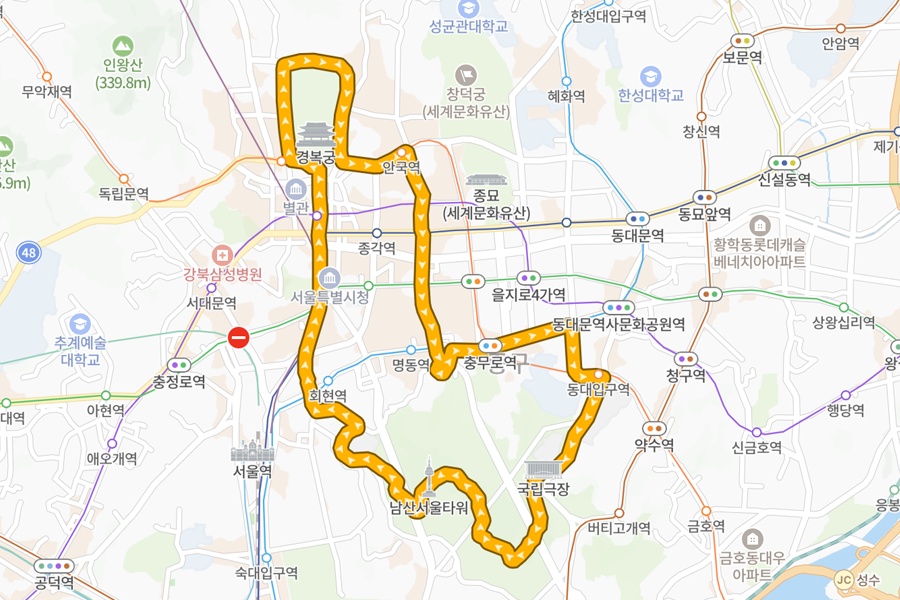 - 位置:会贤站、市厅站、光化门站、景福宫站、安国站、钟路、忠武路站、东大入口站