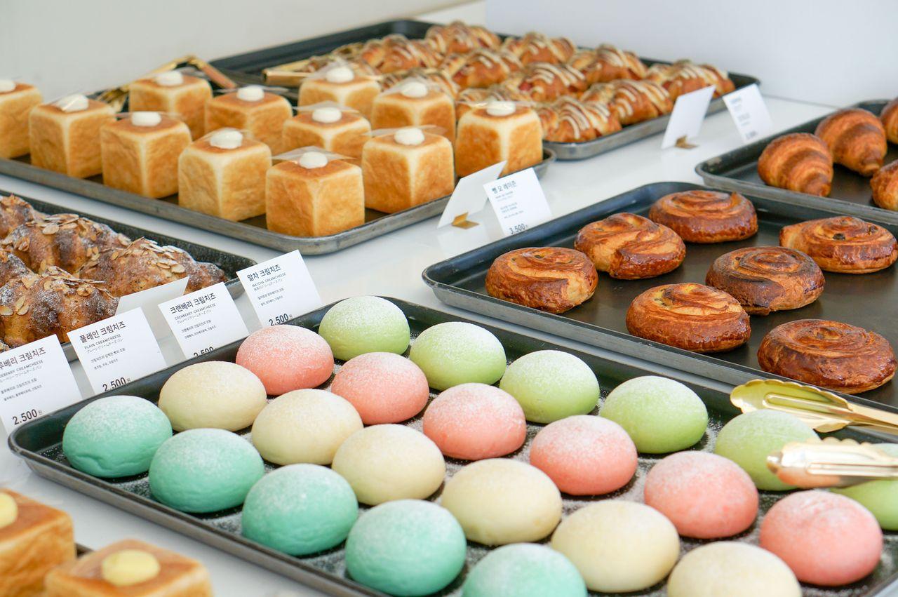 • 这里的甜点样式可爱,而且价格便宜,除了方块面包之外,还有类似草莓大福(糯米糕)的四色奶油起司面包,光是看了就让人觉得超级疗愈。