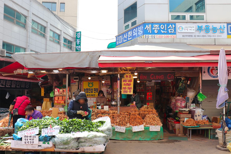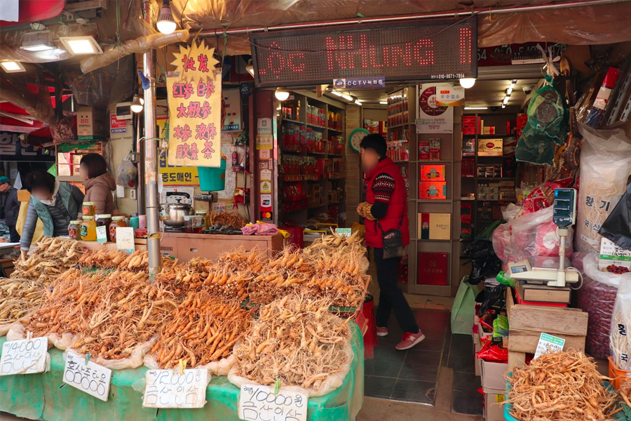 一直往前走,过了药令市场之后,就会抵达京东市场,以及首尔最有名的人参、红参量贩地「京东市场(경동시장)」。