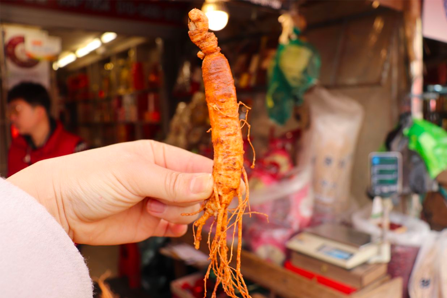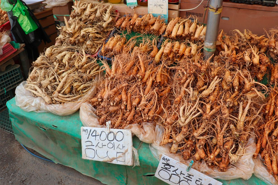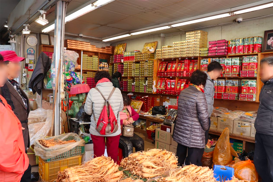 这里到处都是卖著新鲜人参的商家,不过小编要提醒,带著土、还未经加工的新鲜人参(红参),是无法从行李携带入境台湾的,除非备有检疫证明,但基本上传统市场这里不会有相关证明,因此大家只能买「加工过」或是已经「干燥过」的商品。