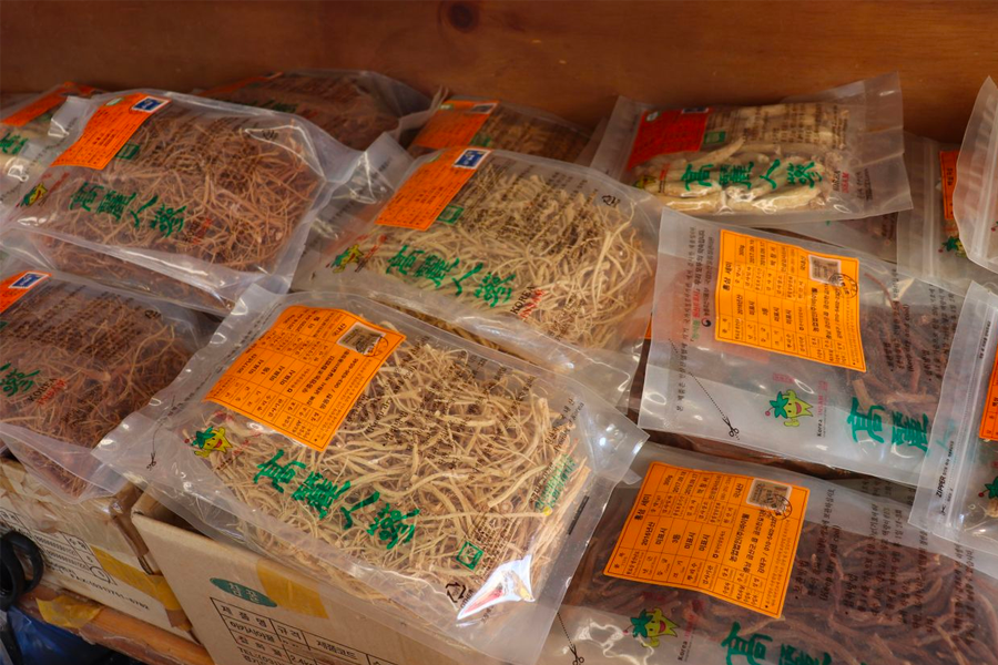 再往里面京东市场里面走,这里的人参店家就比较少,取而代之的是不常见的韩国传统药材,同样的,这里也弥漫著一种让人心神放松、安定的香气。
