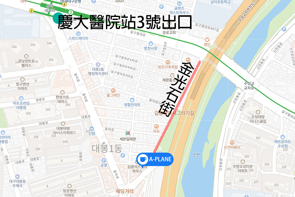 - 小撇步:从大邱地铁2号线庆大医院站的3号出口步行约9分钟。