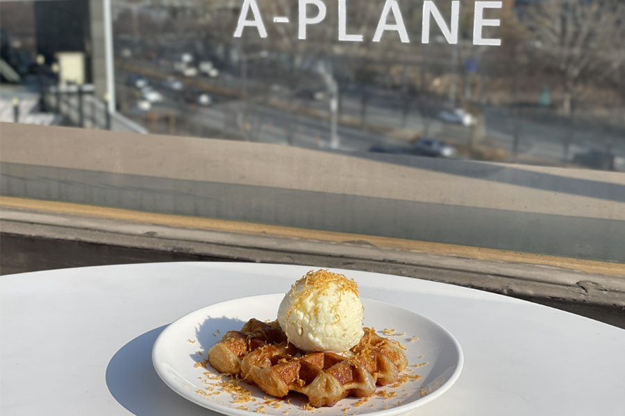 A-PLANE的可颂松饼比其他咖啡厅烤得更加脆,口感薄薄但却带有嚼劲,上头还放了香甜的冰淇淋以及咸起司,是咸甜完美融合的一道甜点,适合肚子饿的时候,来稍微填饱一下正餐前的点心。