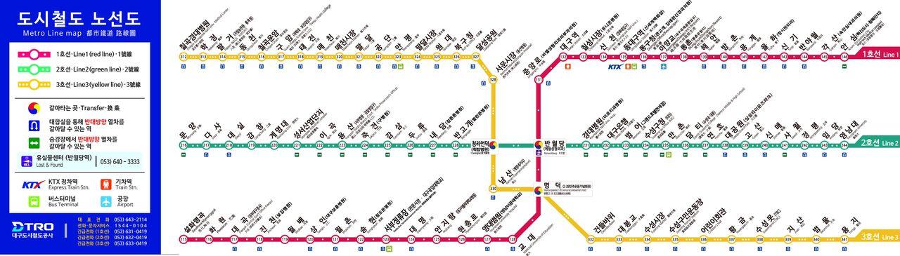 大邱的地铁线总共三条,简单好懂,若是搭乘KTX或是SRT来大邱的话,东大邱站(동대구역)可能是大家最理想的住宿地点。
