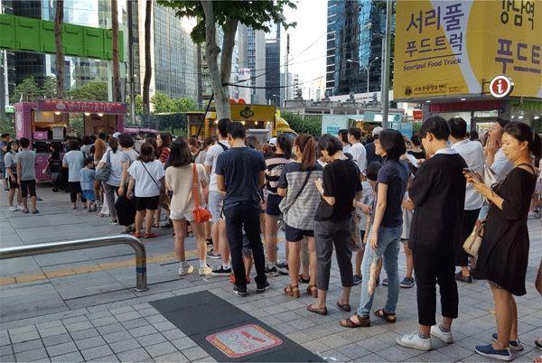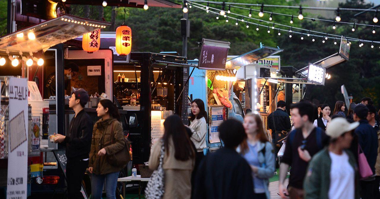食物的部分跟台湾的摊贩有所区别,韩国的夜市文化主要是由「餐车」来贩售食物,而南大门的3GO夜市则是由13辆餐车所组成。