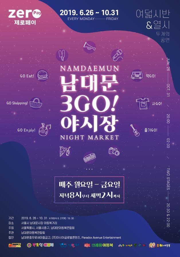 南大门新开幕的3GO夜市,名字「3GO」是代表「GO EAT!」、「GO ENJOY!」、「GO SHOPPING!」的意思。于2019年06月26日到10月31日的每天平日晚上,都会有哦!