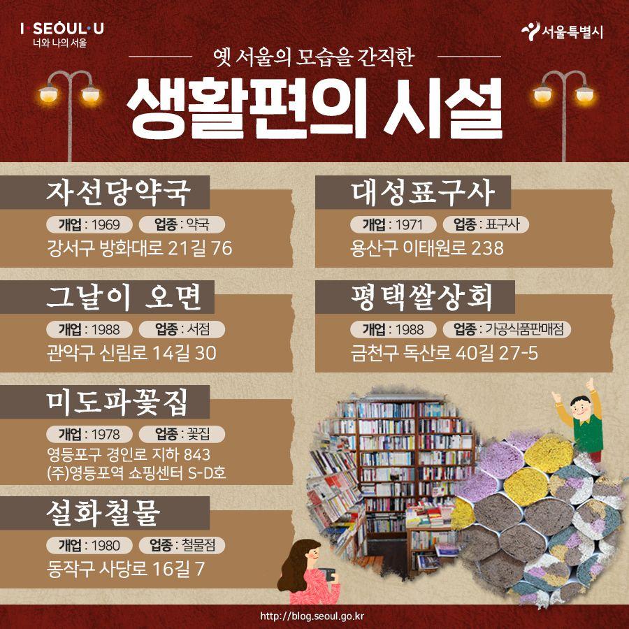 这次市民们新票选出首尔西南地区的老店,共有了22家老店,并分成了四大类:美食店、生活便利设施、聚会地、生活文化。