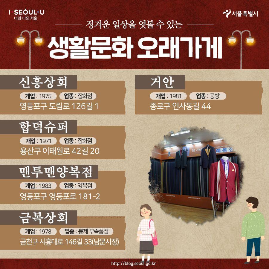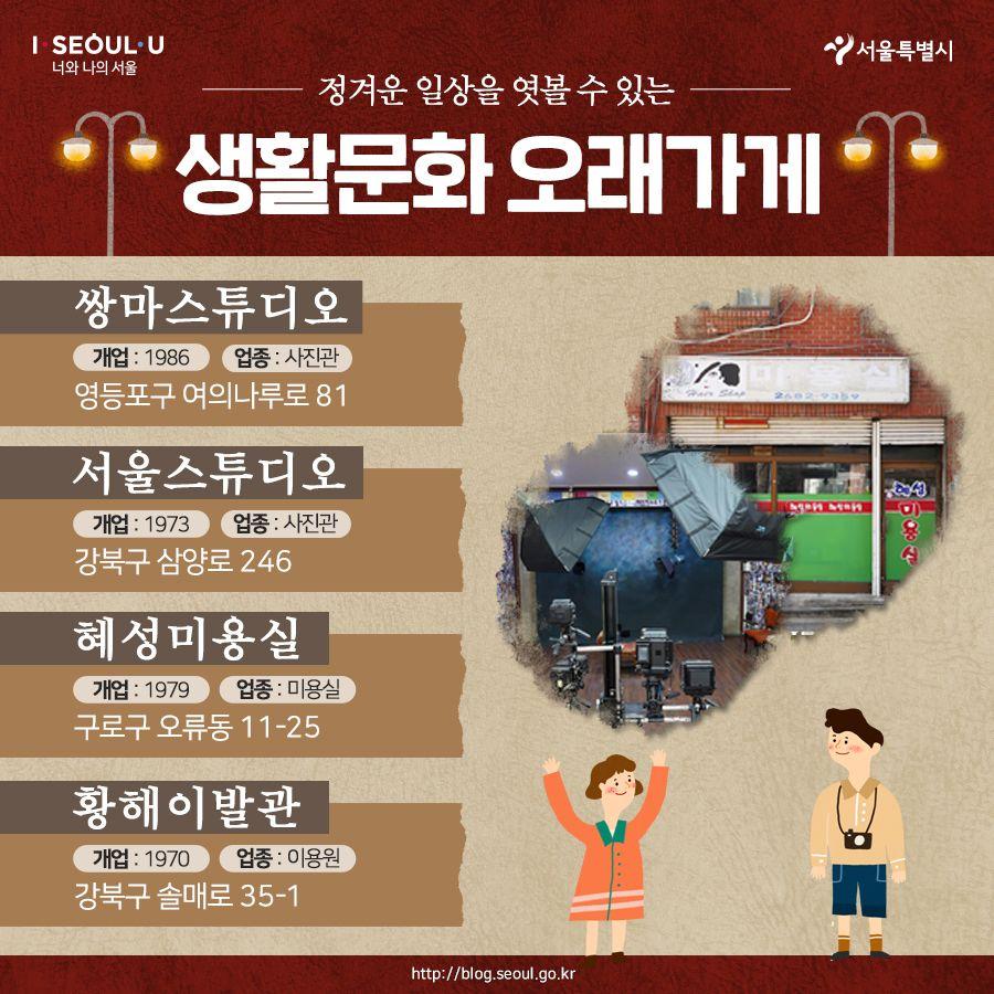 首尔市政府近几年都在推广老店企划,之前已选了65家老店。而这次,则由市民们新票选出首尔西南地区22家老店,小编为大家介绍几家大家可能比较有兴趣的商店,一起来看看吧!