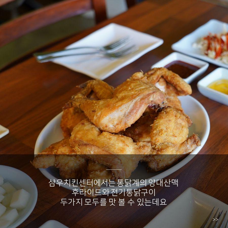 除了各式茶房之外,韩国人以前聚会的地点还有一个!那就是炸鸡店。这家三宇炸鸡中心贩售着韩国传统炸鸡,市场会卖的炸鸡、烤鸡都有贩售。炸鸡配上啤酒,让聚会的气氛都嗨了起来。