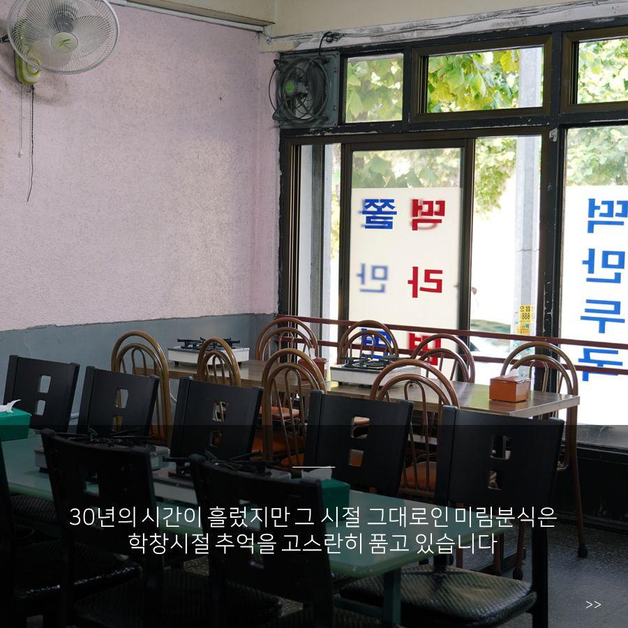 最后一家是传统辣炒年糕店。美林小吃店创立于1988年,非常老字号,不仅仅是附近学生的回忆,也曾出演过知名美食节目《周三美食汇》。可以选择辣味或是杂酱口味的辣炒年糕,吃完之后还可以追加炒饭。