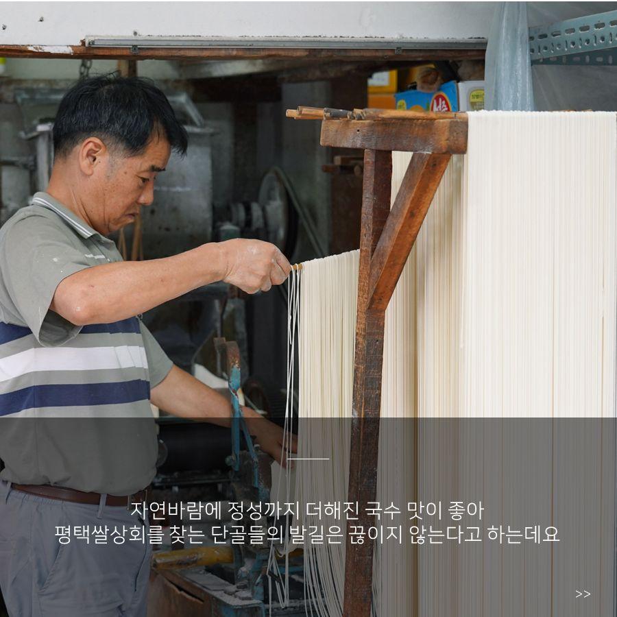 这家创立于1988年的平泽米商会,是家贩售传统面线的店家,即使经过三十多年,还是维持着传统手法跟诚心来制作面条。在首尔已经非常难看到这样晒面的光景了。