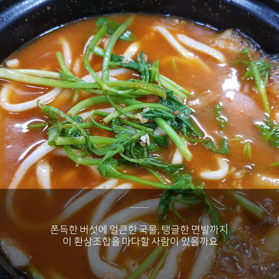 出现在《好吃的家伙们》过的「登村洞崔月善刀削面」创立于1983年,主打菜单跟上一家一样,是有菇类的辣汤,不一样的部分是面!在这里,面是要另外追加,吃完之后也可以加点炒饭。价位也是非常便宜,一人份只要₩7,000。