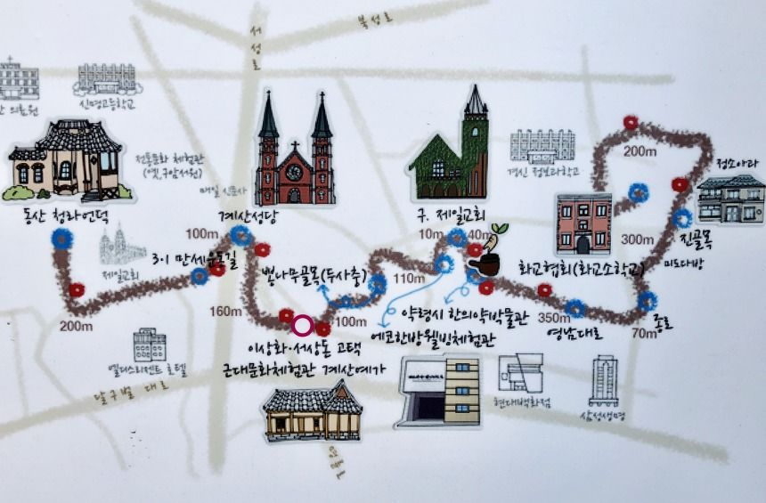 大邱近代文化胡同是一个能学习到历史的地方,包含古代历史、100年前的近代历史到现今的大邱古迹都聚集在这里。