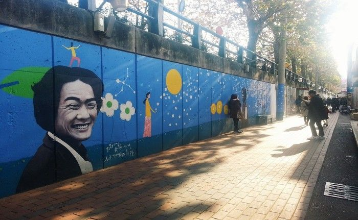 金光石是韩国知名的民谣歌手,他带给韩国大众音乐深远的影响,却年轻早逝,让许多粉丝感到非常惋惜。为了纪念、缅怀他,大邱市政府与几位作家一同打造了这条金光石路,沿路可以看到许多以金光石为主题的壁画或艺术作品。