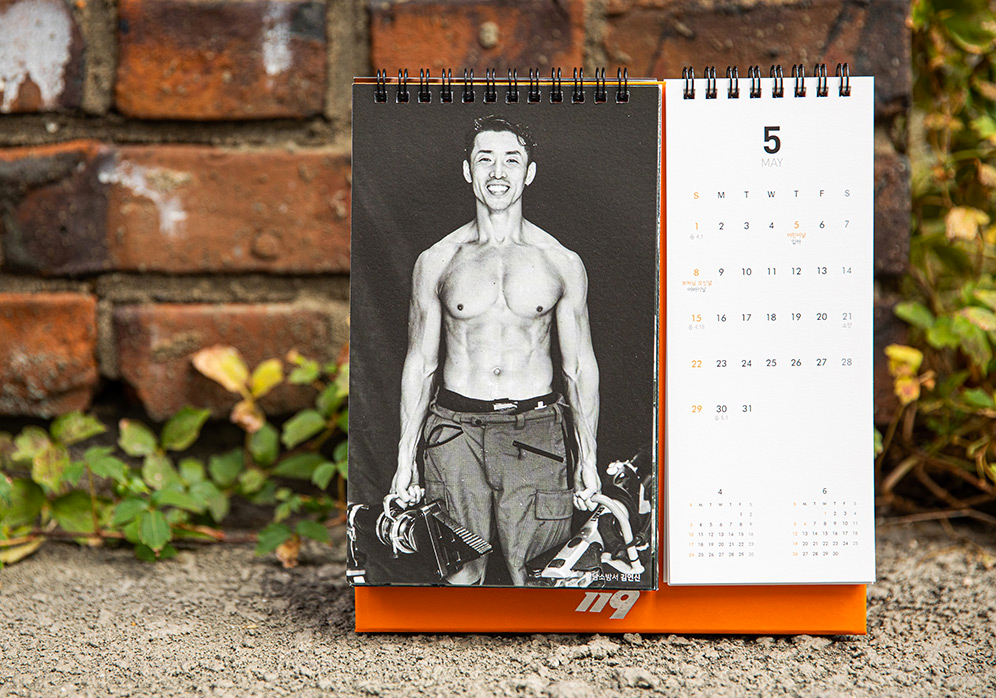 同时,摄影师吴重锡(오중석 音译)也挽起袖子,无偿拍摄,参与了本次具有意义的计划,加上「GS shop」企业连续8年提供制作费用,也让首尔消防猛男月历的收益,能够毫无折扣地转交至有需要的伤患身上。