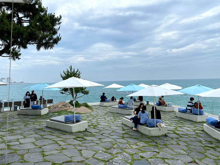 • 釜山的大海辽阔,不只是釜山市区,附近的机张郡更是釜山旅游中的必去景点,位于悬崖旁的Waveon Coffee,不论从任何角度看,都可以一览大海。