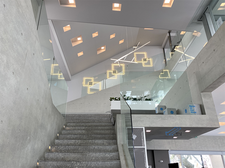位于釜山美丽大海旁非常近的Waveon Coffee,是四楼层的建筑,俯瞰起来有著非常美的棱角,非常具有现代感。