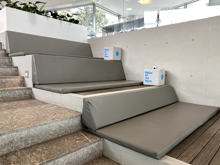 在懒骨头座位区,不论是哪个座位都可以看到大海,所以不用担心,选择舒适的空间坐著享用咖啡吧。
