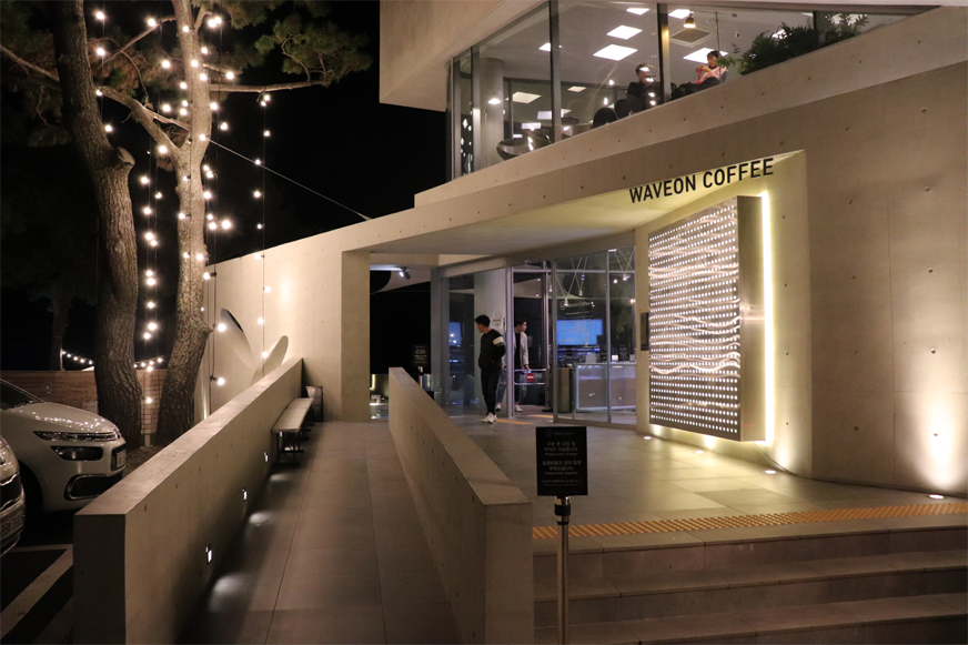 • Waveon Coffee是有名的建筑师郭熙秀(곽희수)的作品,也是获得韩国建筑文化大奖的美丽标的,这里有望向大海的视野、亲近海岸的座位,美丽的氛围去过一次就让人难忘。