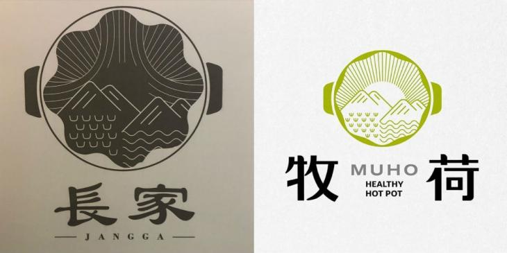 从双方设计上来看,2020年出示的长家餐饮集团Logo,与2017年设计完成的牧荷锅物Logo相似度非常高,撇除设计,山、海、稻以及整体形状都一模一样,只有细节部分做了几乎无差的修改。