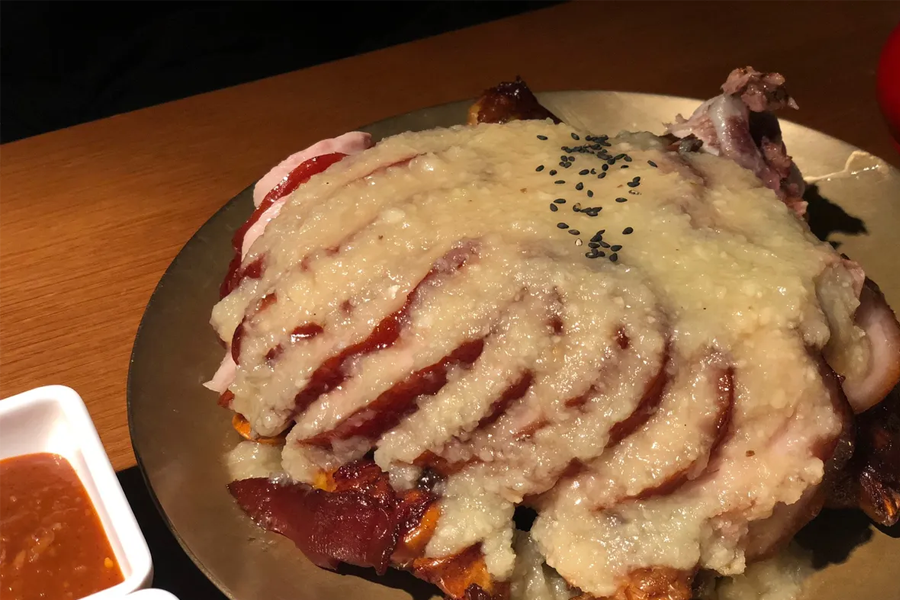 肥吱吱的猪脚卤得入味、爽口,而猪脚小姐更为人所喜爱的,便是他们独特的「蒜味猪脚」,将蒜蓉酱豪迈地淋在猪脚上,香气四溢,吃起来更带有香甜的味道,和猪脚Q弹口感相当合拍。