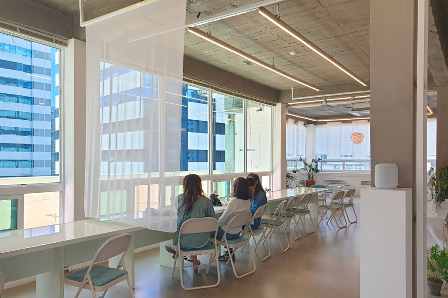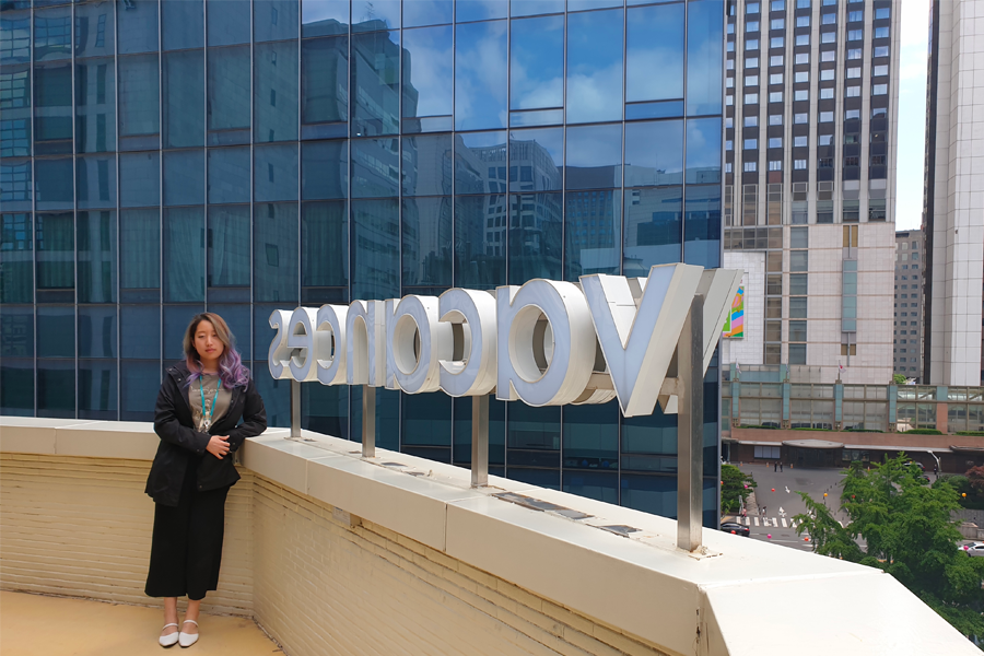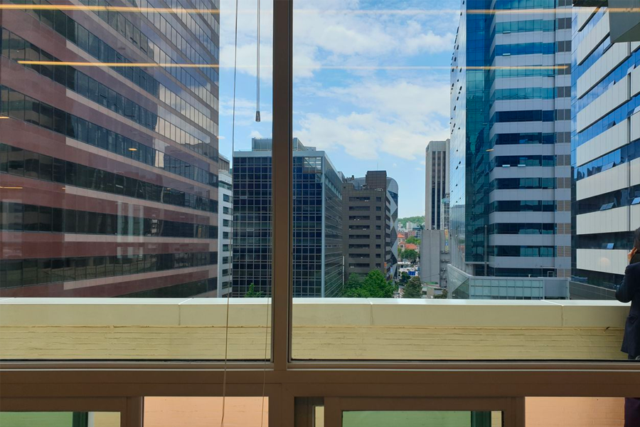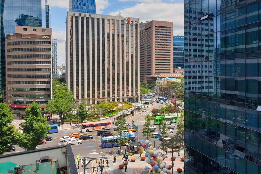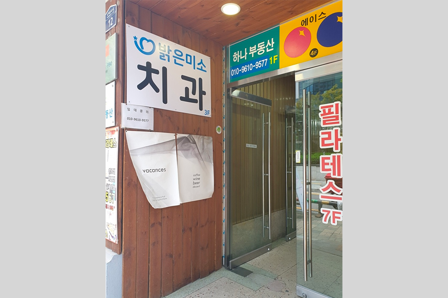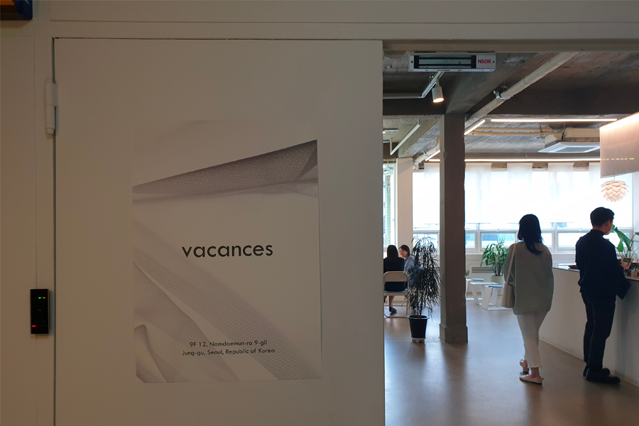 vacances就位于乙支路入口站旁,这附近都是上班大楼,位置上可能比较难找(在9楼)大家记得认上图的门口,从这里进去,搭电梯到九楼哦。