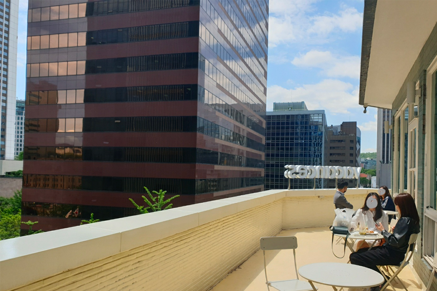 而且更棒的是,在阳台处也可以眺望乙支路入口周边繁华景象,更远的前方就是明洞,之后来韩国旅游的时候,不妨多走一点路,离开繁杂的明洞,到vacances喝杯咖啡吧。