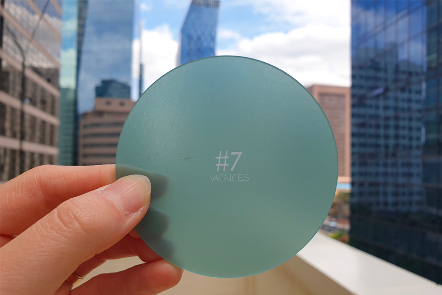 这里就是最漂亮的打卡点,以vacances为背景,还有身后的大楼与蓝天白云,在繁华的都市水泥中忙里偷闲。而且就连vacances的取餐号码牌,做得也蛮有质感的。